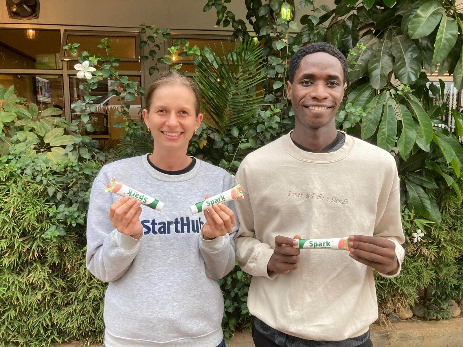 Laura Althaus Mugagga, Co-Founder, StartHub Africa, and Kisaaliita Dennis, Co-founder, Spark Herbal Toothpaste.